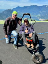 We understand that most of our passengers rely on the support of family, friends, and caretakers, and we will provide one or two of these supportive folks the opportunity to experience free flight. While not always possible, we strive to get both the adaptive flight and the foot-launch support person flying together.